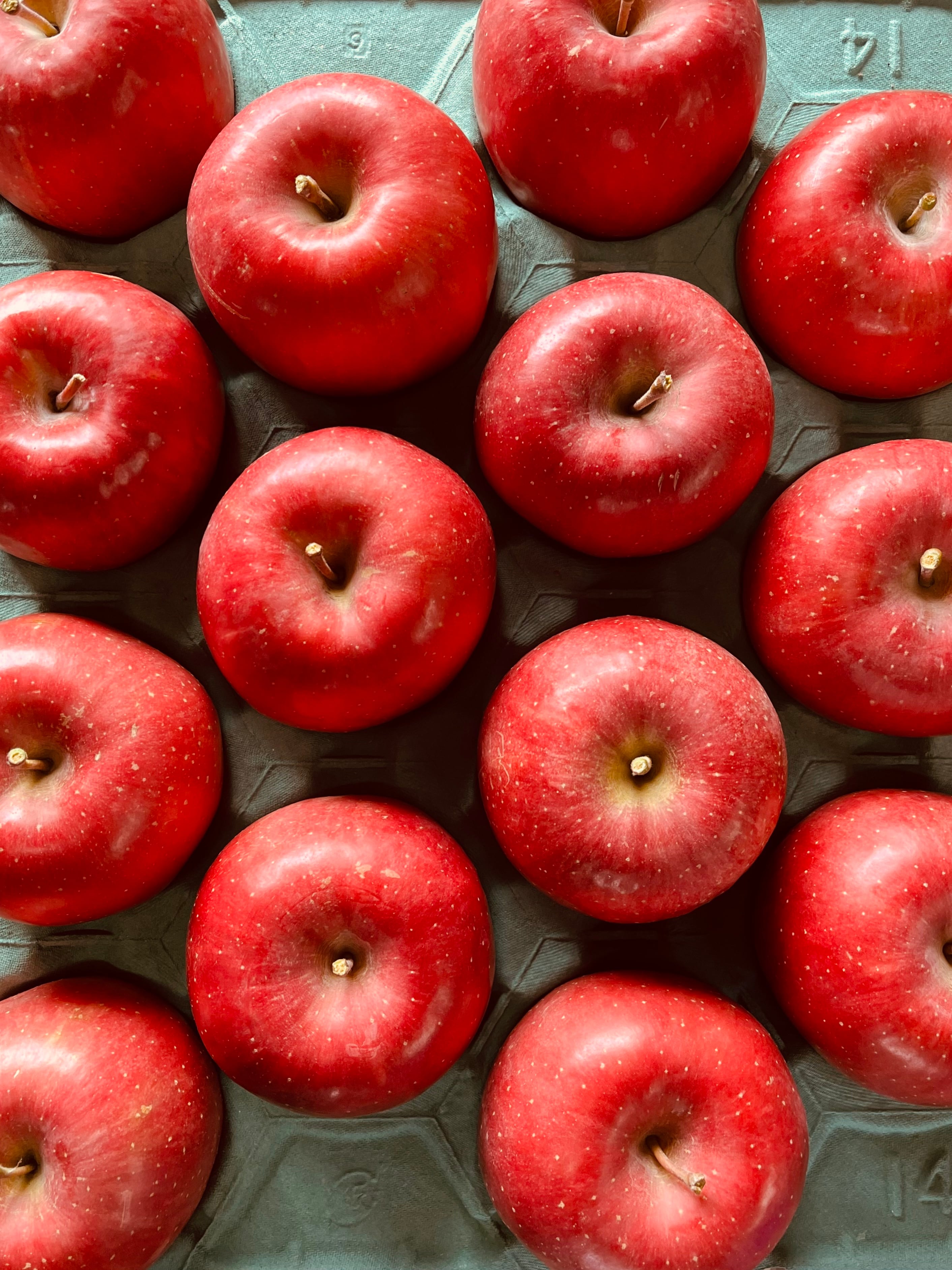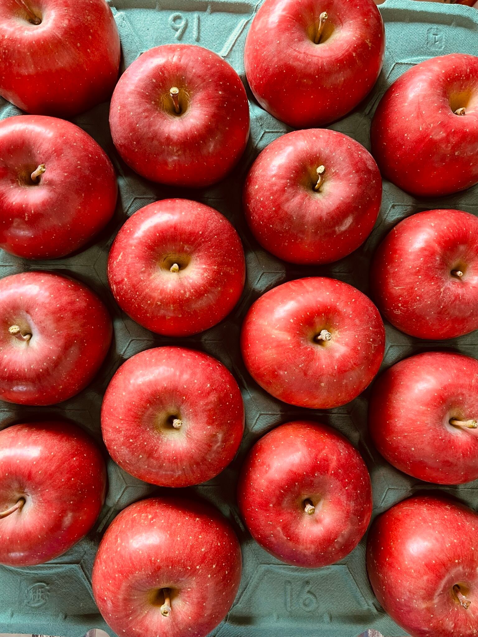 佐藤ファームの「ふじ」は、春から秋まで、自然の太陽をいっぱい浴びて育ったりんごです。