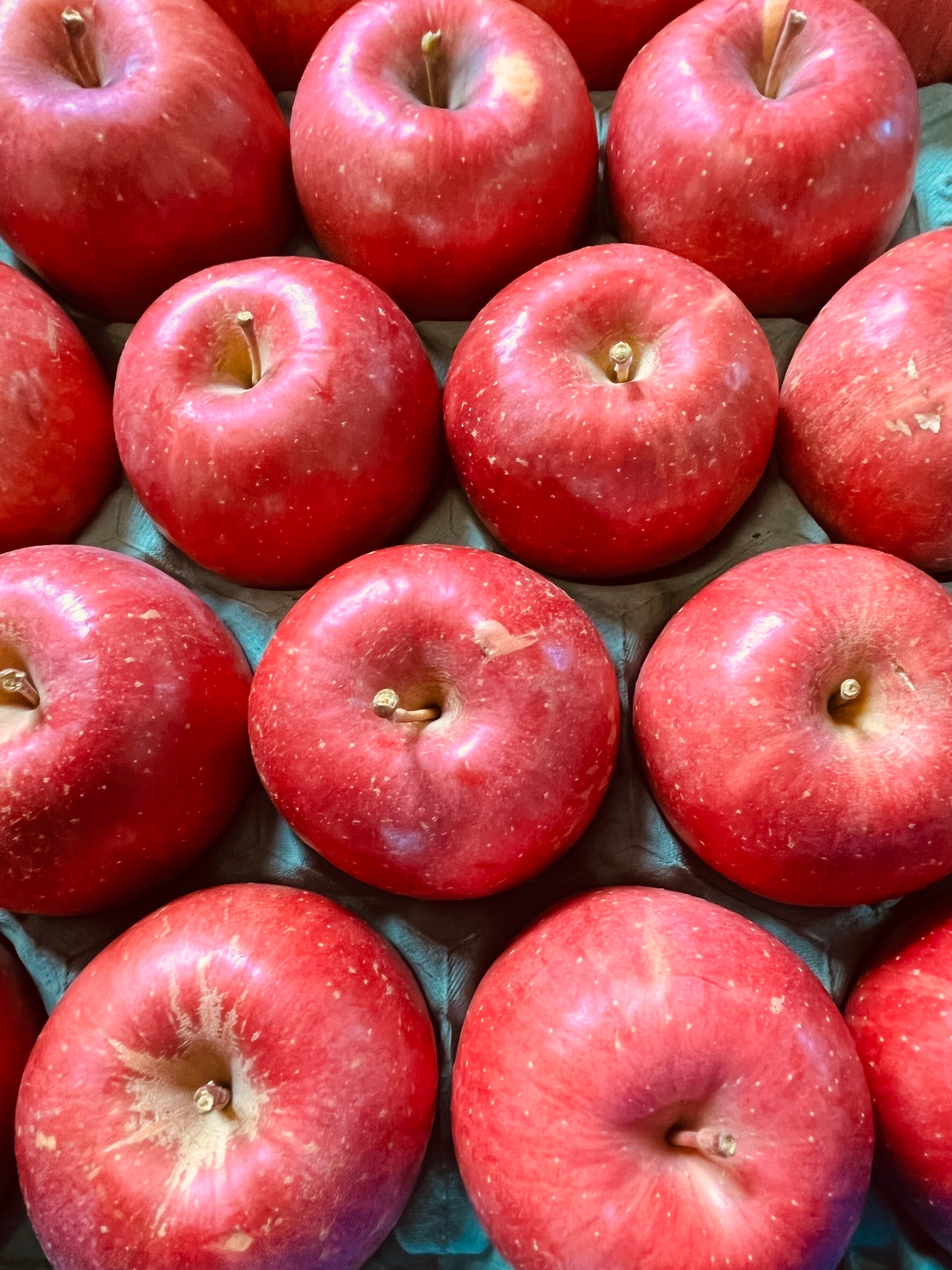 佐藤ファームの「ふじ」は、春から秋まで、自然の太陽をいっぱい浴びて育ったりんごです。